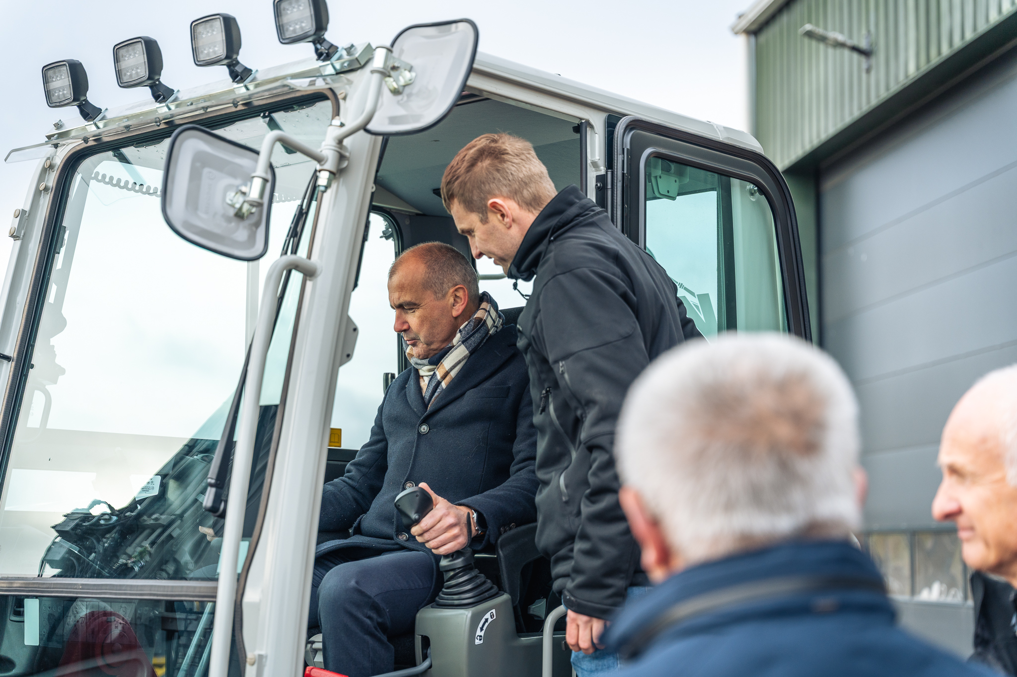 Vlak voor kerst hadden we de primeur en het voorrecht om de allereerste elektrische Tomach ET2100 Minigraver in ontvangst te mogen nemen. Toon Heesters van leverancier Tomach en Frank van de Staak van engineer/bouwer FPS-Machines B.V. kwamen persoonlijk de sleutels overhandigen, onder het toeziend oog van wethouder Bas Wonink van de gemeente Kampen. Een impressie daarvan is te bekijken via ons youtube-kanaal https://www.youtube.com/@GrondverzetbedrijfVisscher